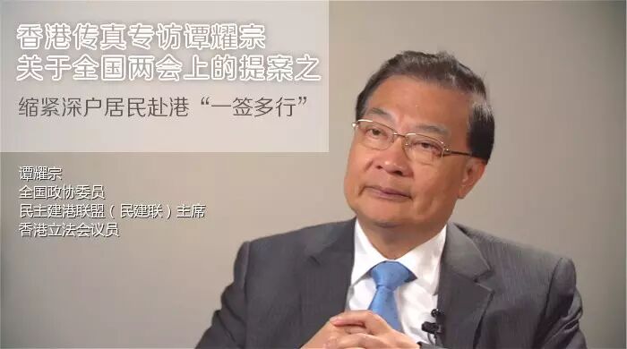 2月25日,香港传真(微信号: cnchktv)在香港综合大楼专访了全国政协委员、香港民建联主席谭耀宗,他在专访中向我们确认,将会在上,提出削减深圳户籍居民赴香港旅游“一签多行”,建议将“一签多行”改为“一签若干行”。(香港传真注:现有的“一签多行”政策,相当于每个办理了相应赴港签证后的深圳户籍居民,一年内可无限次进出香港。)