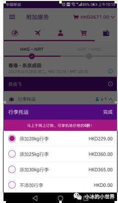 (这里我就吃了一个亏,后面用信用卡买行李一直系统支付不了,本来想着自己的支付不了,直接用朋友的买吧,结果买完后,登机前一天不能办登机证,原因就是因为我订单里的行李选购了但未付款,然后我打电话去问他们客服,他们说无法退款,一定要我付款才能登机,说回来之后可以继续投诉拿回,后面自己认栽,幸好才2百多,就当破财挡灾吧!不过如果是前面忙着抢票后面买也可以,但是一定要注意这一细节,老实说就是他们的系统做的太烂了,好了,不吐槽了。)