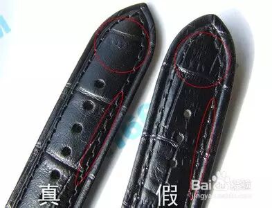 23.正品CASIO手表的皮质表带缝纫处走线整齐,仿品的走线处则不够规范,或有扭曲。