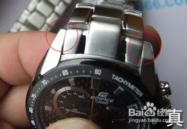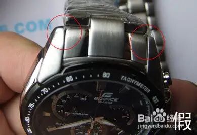 20.正品CASIO手表表耳的侧面比较细窄,仿品的这个部位多比较粗大。