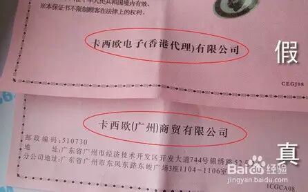 14.正品CASIO手表的保修卡底部标注为卡西欧(广州)商贸有限公司,而仿品的保修卡底部字样为卡西欧电子(香港代理)有限公司或为其他公司名称。![]()