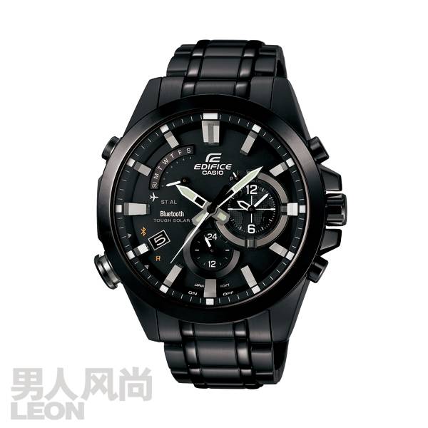 腕表是以EQB-500为蓝本的更新产品,能通过智能手机设定约300个城市的世界时间,为了方便经常出差的商务人士使用,特采用了两地时布局,清晰地同时显示当地时间和世界时间。手表通过主指针显示当地时间,小表盘显示世界时间,佩戴者可通过手表按钮进行操作,简单切换2个显示时间。可通过专用的APP——“CASIO WATCH+”与智能手机相连接,通过手表的蓝牙按钮一键连接智能手机。独有的太阳能驱动功能,不仅仅是太阳光,连微弱的日光灯源也能转化为电能。