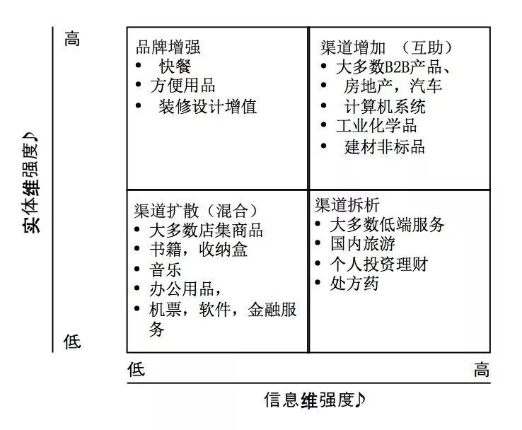 好的开始是成功的一半。找准数字化的方向,是成功落地的前提。一个行业通常可以从“信息”和“实体”两个维度来分析。信息维度是指客户做购买决策时所需的信息复杂度;实体维度是指客户判断商品时有多依赖现场体验的感受。不同的行业有不同的数字化方向。