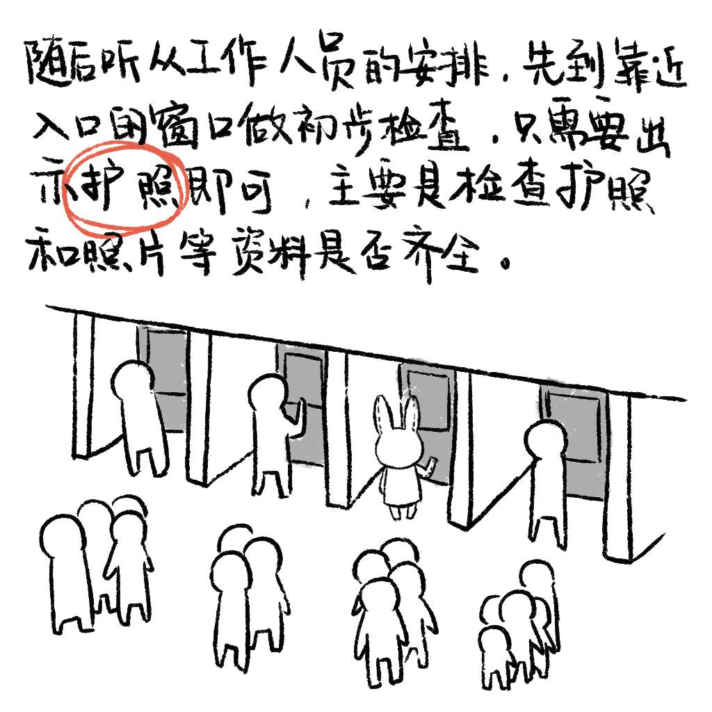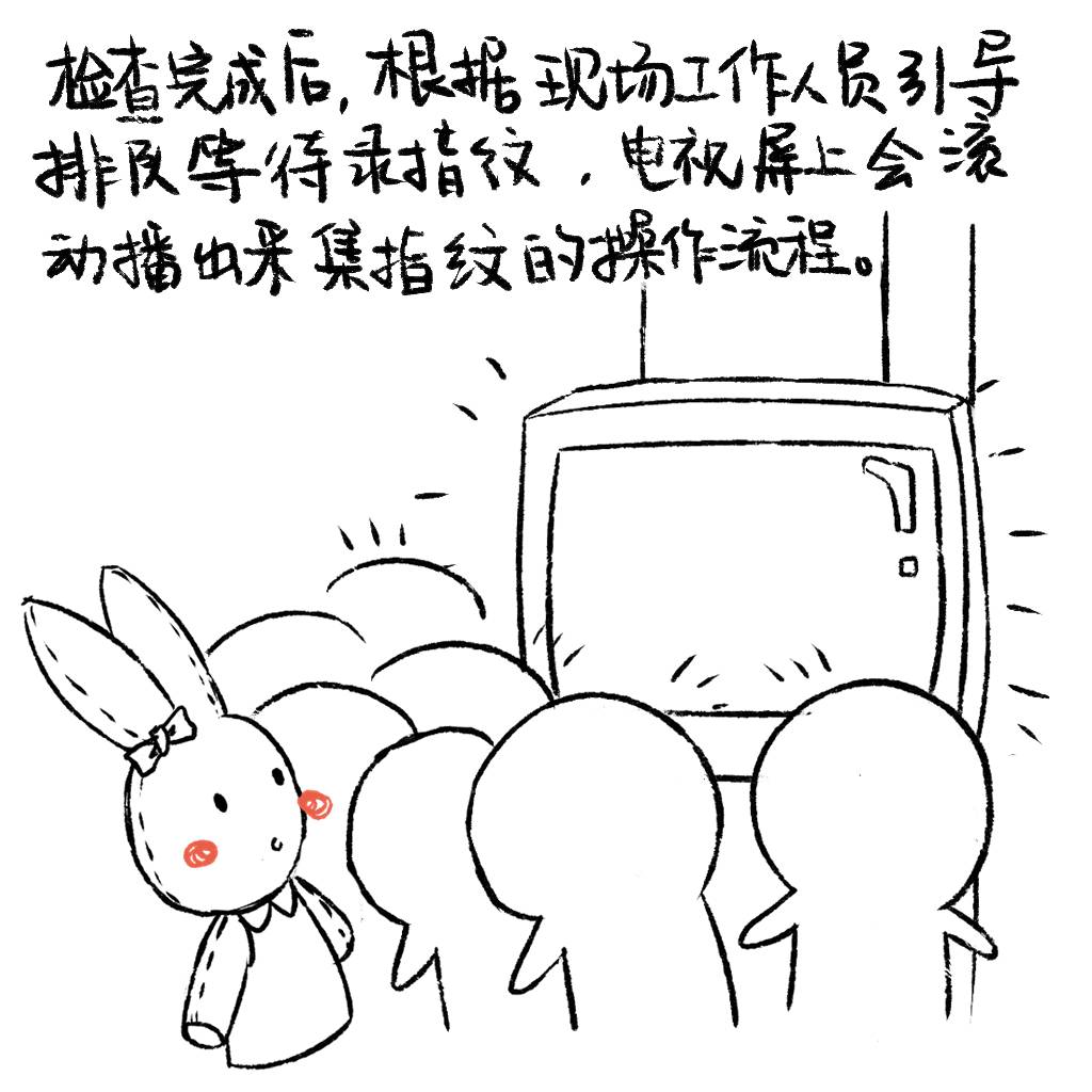 拿回护照以后,再排另外一个队伍去录指纹。