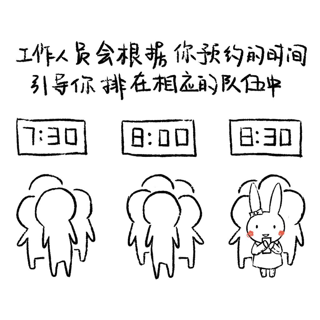写字楼入口旁边有一个地方排队区域,旁边有树一块小牌子写着几点,意思是现在排队的是预约的几点的人,有个保安大叔在旁边管着。![]()