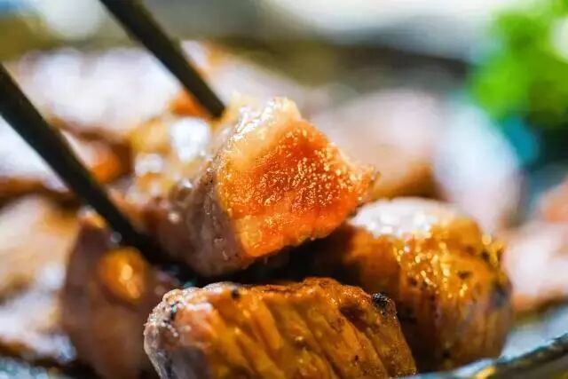 建议不蘸调料,这样才能吃出和牛的香味。入口淡淡胡椒香,牙齿一咬肉汁就来了个香味暴击,接着就在口中化开了。
