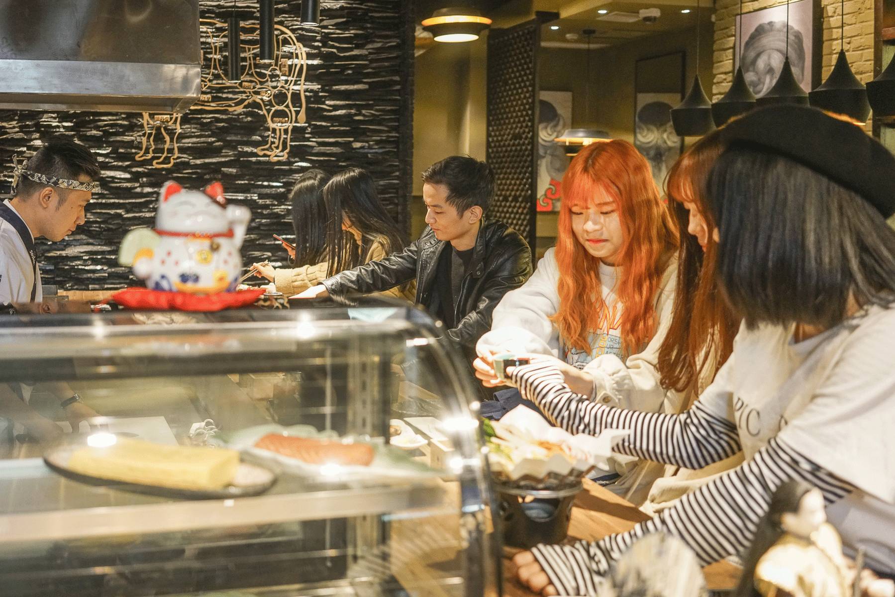 晚上就秒变居酒屋,围着吧台坐上一排人,吵吵闹闹的颇有烟火气。来一份烧鸟、一壶烧酒,别说,还真有在日本的感觉。