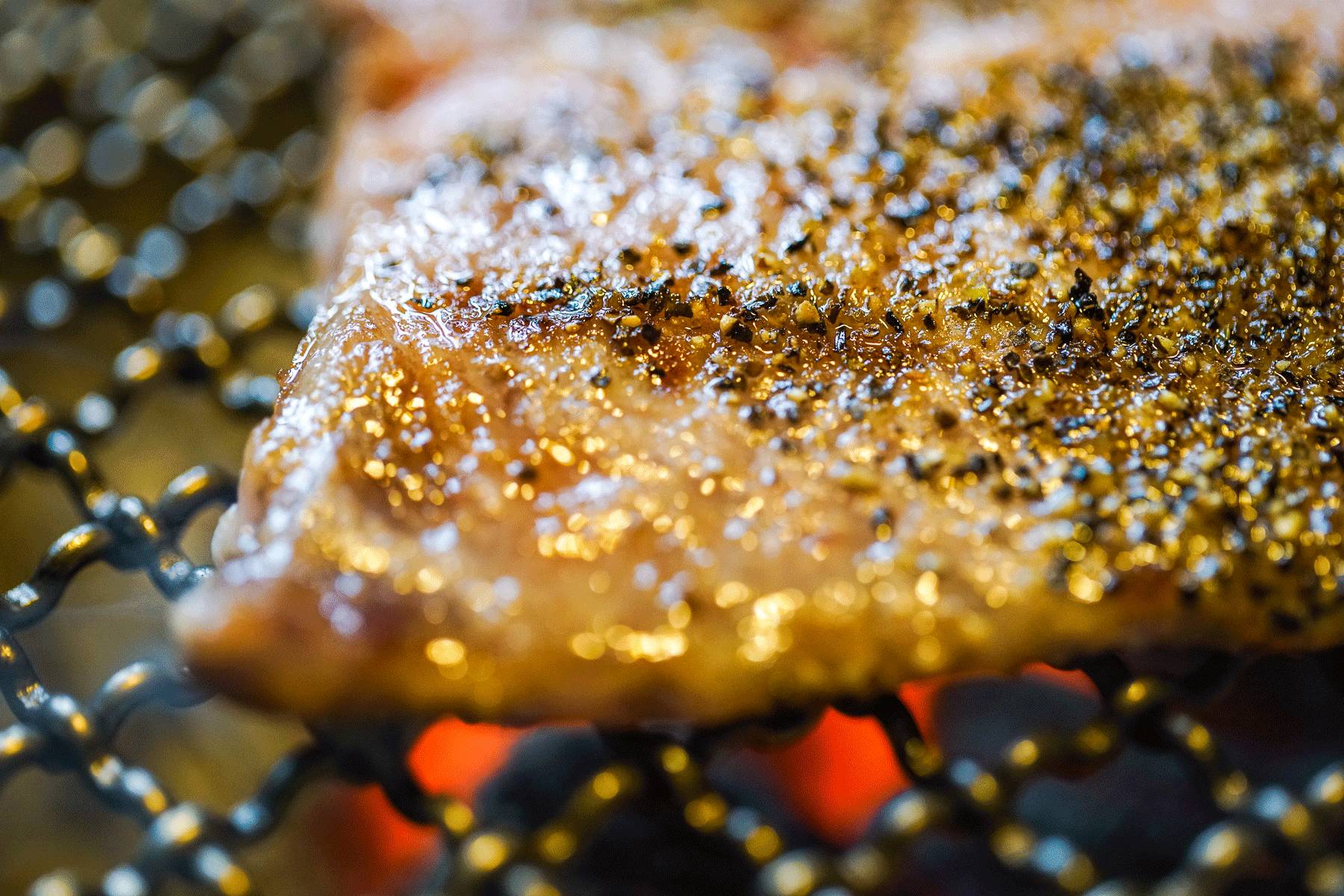 一面烤,等汁水慢慢渗出来的时候翻面继续烤。