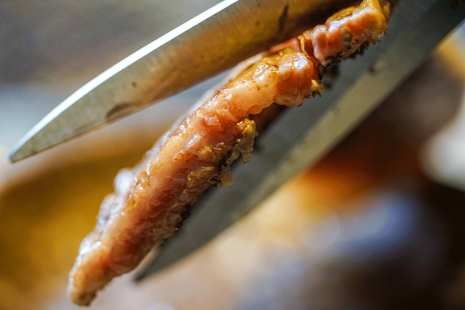 整片正反面翻烤1分钟,七分熟最好,烤熟了小哥会帮你剪成小块。贴心的很。