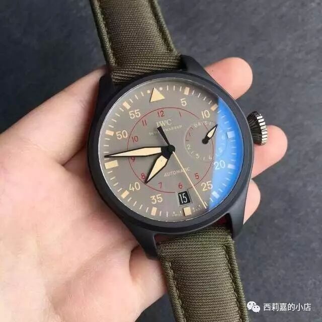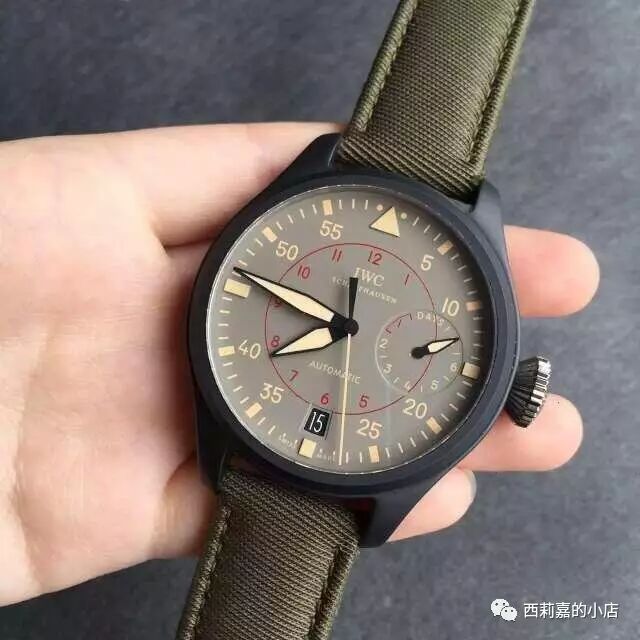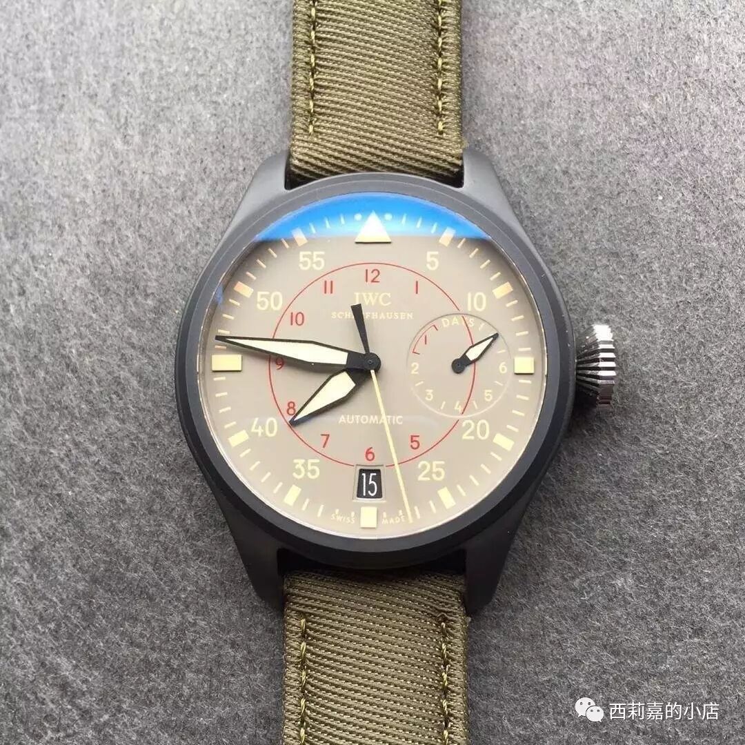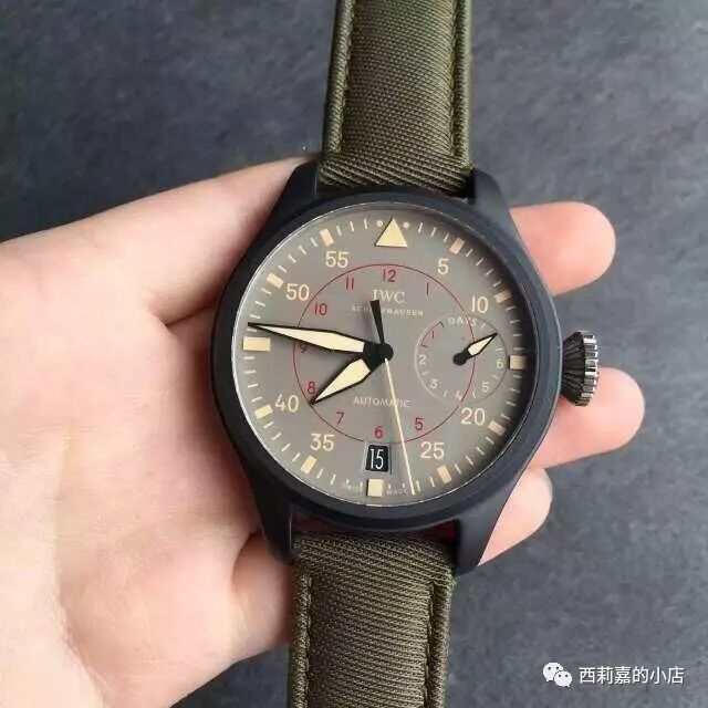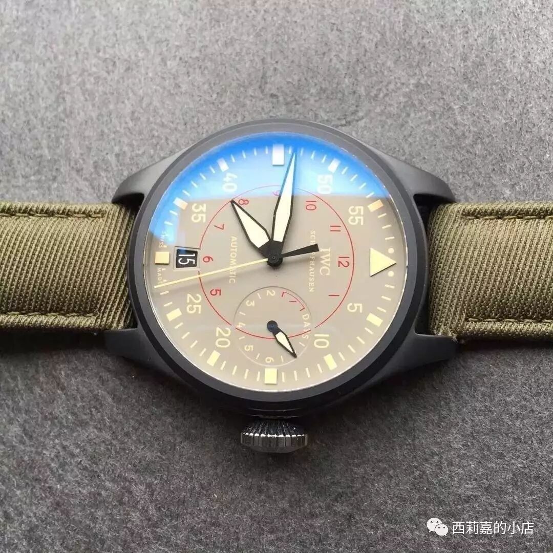 万国大型飞行员系列海军空战部队IW501902自动机械表-顶级复刻版,材料和原装一致,正品开模完美1:1复刻,具体参数如下:尺寸:48mm×15mm机芯:海鸥23j自动机芯镜面:蓝宝石水晶玻璃表盘:灰色表壳:黑色陶瓷底盖:钛合金表带:墨绿尼龙带表扣:针孔防水:50米配件:包装盒,机芯证书发票一套