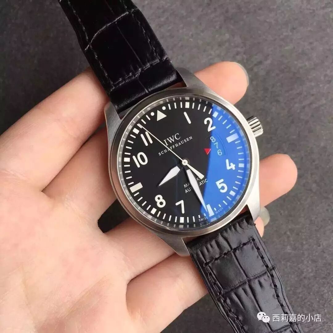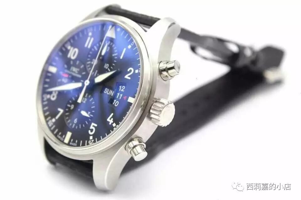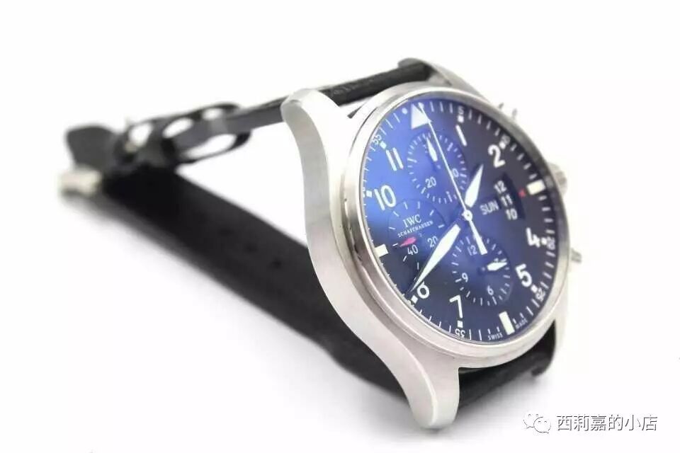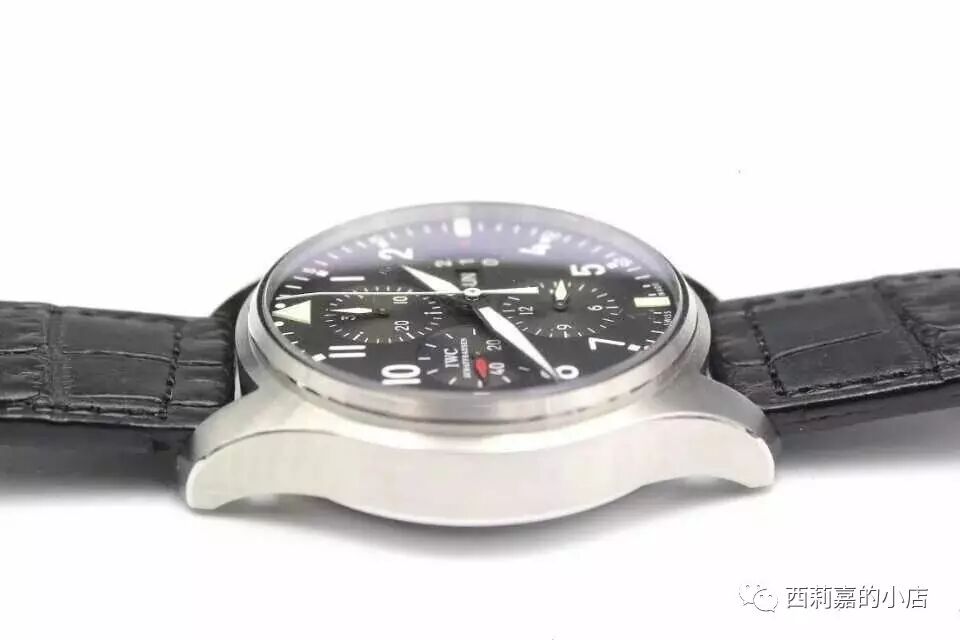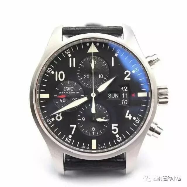 IWC万国飞行员计时腕表IW377701-顶级复刻版本,非常经典的万国款式,做工绝对和图片一致,具体参数如下:尺寸:43mmX15MM功能:小时,分针,秒针,日历,计时机芯:7750机芯,摆频28800镜面:蓝宝石镜面,双层蓝色镀膜表盘:黑色表盘,瑞士进口夜光粉材质:精钢表带:小牛皮表带,可以升级鳄鱼皮表扣:折叠扣防水:50米配件:包装盒,机芯证书发票一套【100%实物图】所有图片均为手机或者数码相机拍摄实物图,不用担心和实物不一致!