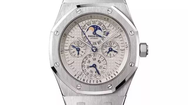 爱彼的时间等式万年历表,9点和3点位子表盘分别指示日出日落时间,。