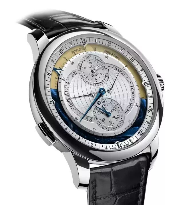 对于如此精密绝伦的一款作品,总会存在着这样那样的疑问,比如遇到DST夏令时怎么办?或者为何只显示南北纬60°,而非90°?前者其实可以主动调节,至于后者,我认为是为了避免出现极夜的情况,因为无法将黄色转盘全部隐去。