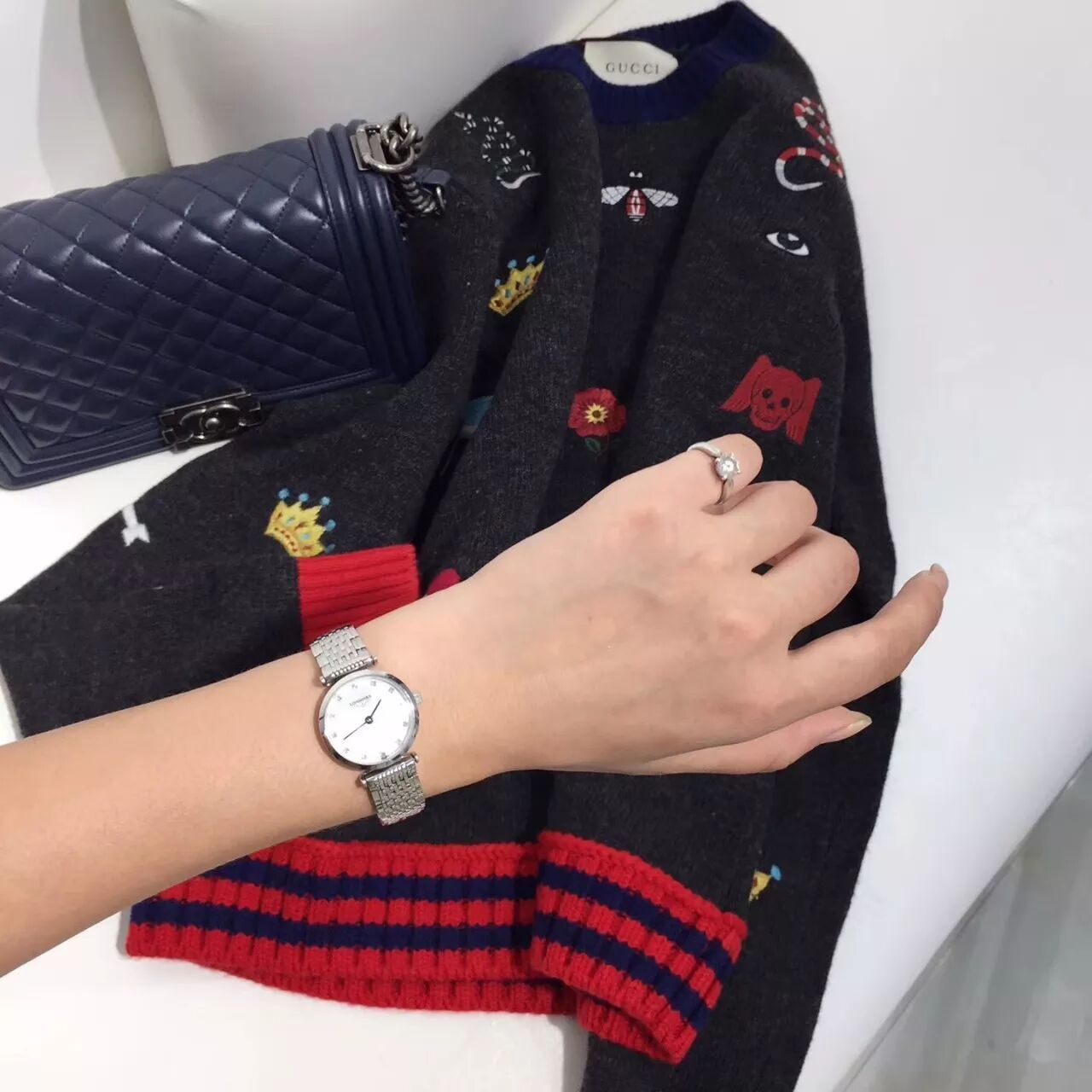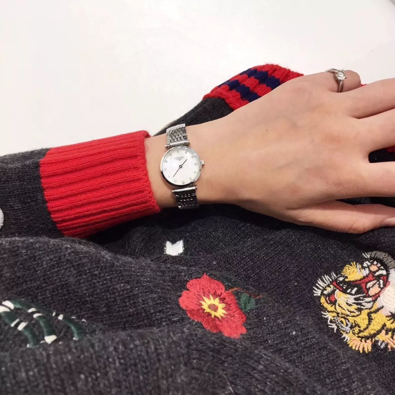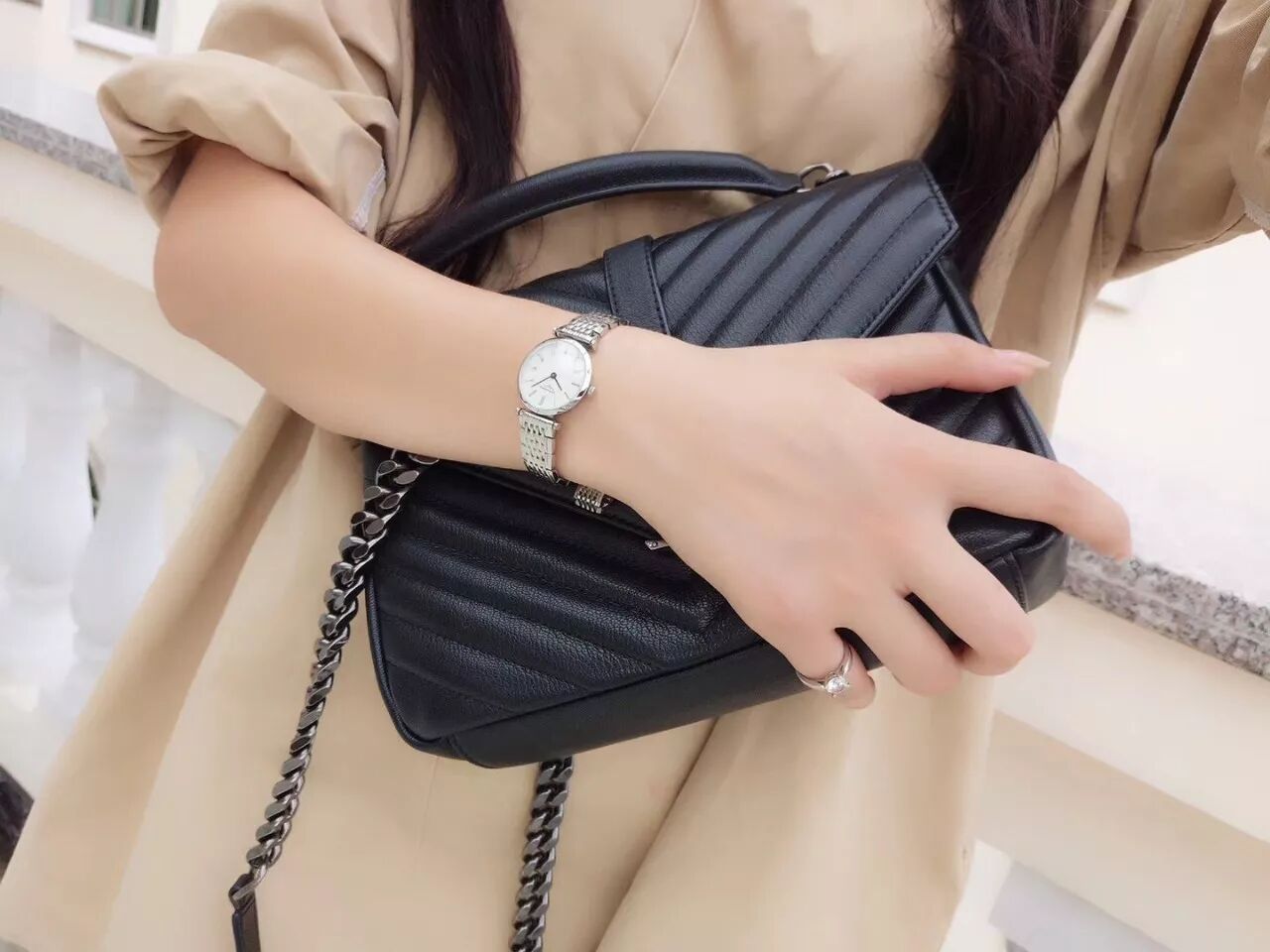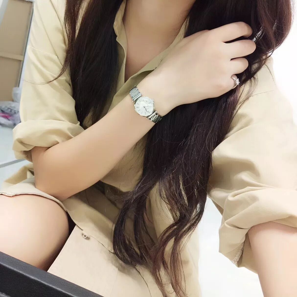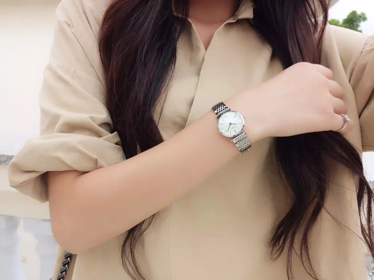 模特太喜欢这个表,说戴着很有感觉,整体很有气质,不停换穿搭拍照 不懂女人心
