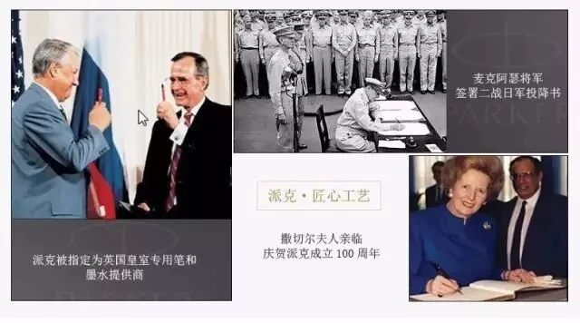 从上世纪70年代开始,派克笔就成为了英国皇室的御用笔。皇家成员们多次携带派克笔出席重大场合,签署重要合约和文件。从总统尼克松历史性访华到布什与叶利钦签署核裁军条约,一个多世纪以来,派克见证了一幕幕世界范围内具有影响力的历史画面,更逐渐成为人们生活中不可或缺的一部分,激励着一代又一代人勇往直前,成就卓越。