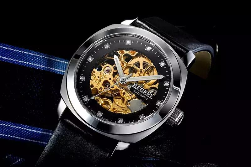 2、BEGEEL 宾爵 B264M 男士镂空机械腕表(专柜价:9800元)