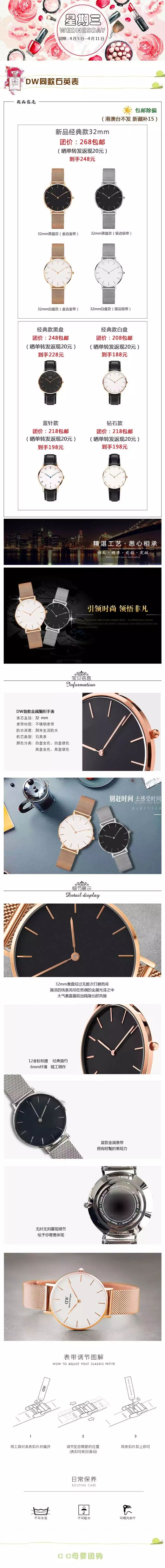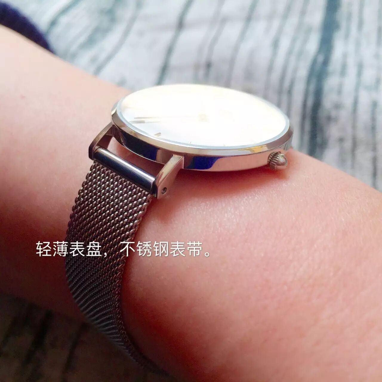 一块手表就能代表一个人的气场,DW同款石英表极简的设计百搭又时尚。这块手表在Ins上非常火,30米生活防水,戴着游泳都不是问题,防凉水不防温水热水,所以泡澡不能佩戴呢!简约的款式,表盘32mm,搭配正装和休闲装都很OK~ 表带是不锈钢材质,出汗也不用担心会变色,附送调表针,可以根据自己的手腕来调节表带长短,免去到表店截表带了,非常方便。