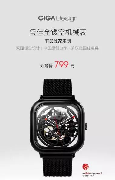 今天上午小米杂货铺上线众筹一款新产品,玺佳全镂空机械表。双面镂空设计,逼格满满。采用海鸥AAA机芯。完全的追求美学,放弃了实用性,表盘没有数字刻度。作为国产海鸥AAA机芯,搭配镂空设计,799的价格。还是那句不变的广告词,年轻人的第一块机械表,你会买单吗?