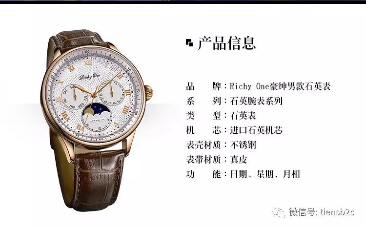 许多成功人士认为,拥有一块高品质的腕表不仅是独特品味的体现,更是肩负责任的象征,表针行走时若有似无的咔嗒声似乎永远在强调时间的宝贵,提醒自己重视家庭,专注事业;提醒自己时刻宽以待人,严以律己;提醒自己要在有限的时间里无止境的令幸福延续。选择天狮Richy One腕表,从现在开始从容掌控时间,运筹帷幄,完成从外表到内心的双重武装,下一站的成功者,非你莫属。