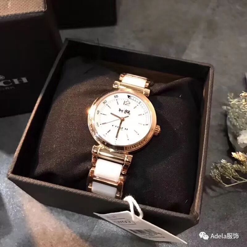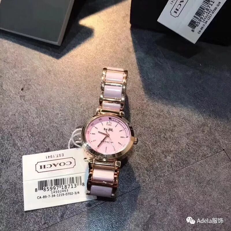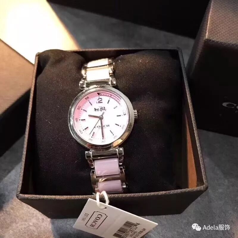 蔻驰又添新款粉陶瓷!太好看了!贸易公司纯正的渠道货!保证正品无疑,全套包装,不正包退!吊牌跳码一一对应,蔻驰(Coach)Sport 蔻驰手表 Bracelet女款间陶瓷手表,小巧时尚休闲白搭陶瓷石英表,30mm表面尺寸