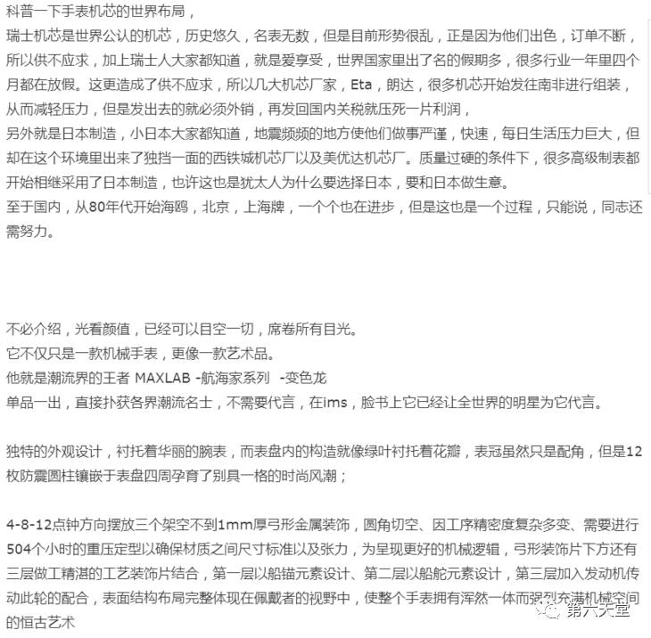 人体动能机械机芯,经久耐艹!现在我来给大家科普一下如何鉴定是不是好表!有一些简单的知识不说大家基本上知道好的机械手表最起码要保证的是走时精准,正常手表都会有误差,除了陀飞轮以外能把手表误差降到最低的价格都不菲,我们知道的浪q一个月都要误差几分钟!另外一个鉴定的方法就是储能!机械表为自动上弦,人在运动的时候机芯已经在工作上弦,
