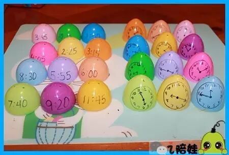 很多手工材料也可以玩,比如咱们店里的10色彩蛋,上半部分写数字时间,下部分画钟表