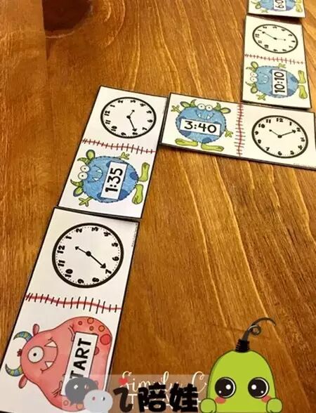 咱不说了么,啥都要练练,光会认了个时间,那有点亏。这个游戏就是用的接龙的方式,一张卡片的尾巴连接的,另一张卡片的头要是一样的时间哦