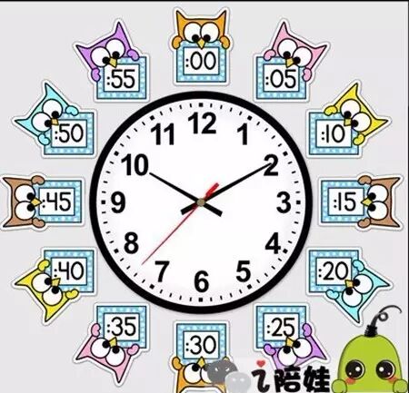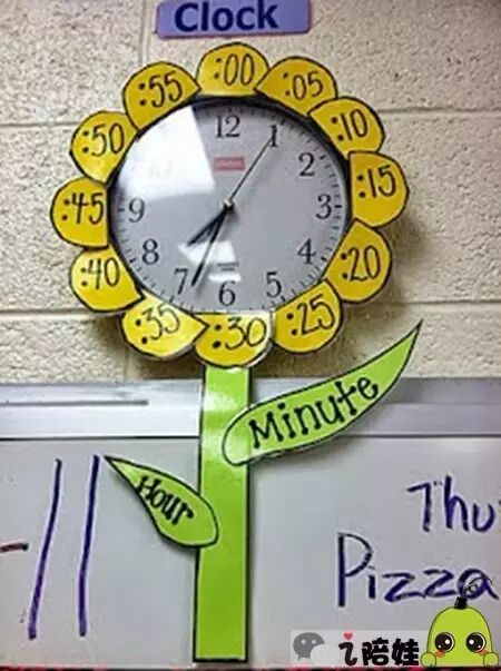 你可以把家里的表DIY下,花瓣用来写上整分,花叶短的写时针、长的写分针,总之怎么好记怎么来。