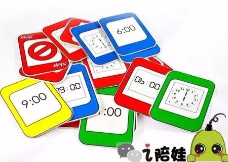 上图的示范是有分钟的,所以给娃选了套只有整点和半点卡片