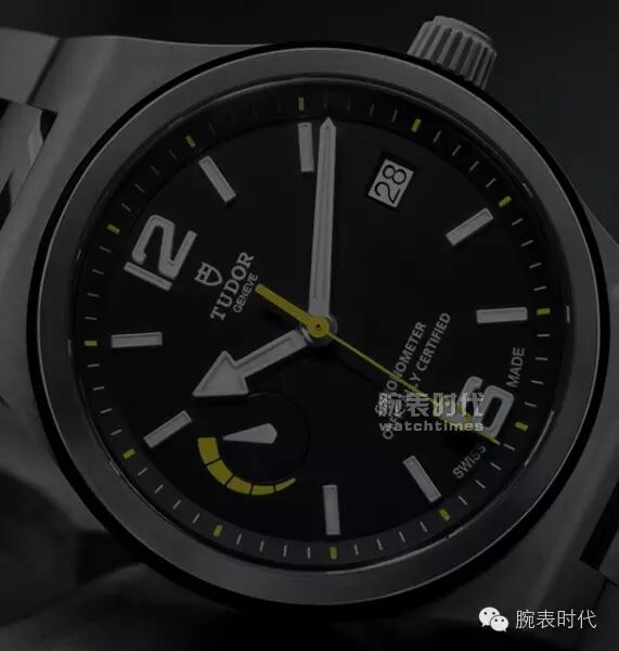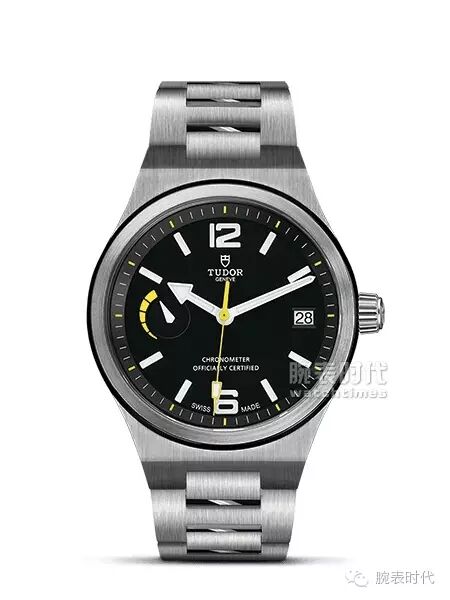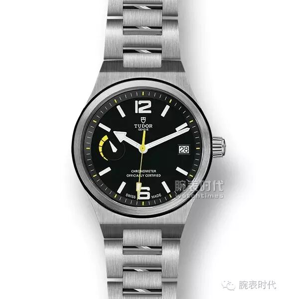 帝舵North Flag极帜型腕表91210n-0001整体线条设计充分展现运动风尚,无论是箭形指针的应用、动力存储的外观,还是磨砂哑面的表壳、大面积黑色表盘中点缀的明黄色,都体现的浓浓的运动风。表壳采用不锈钢材质,中层表壳棱角分明,打磨精细且全磨砂,以达到哑面效果,营造一种高科技观感。另一方面,精妙的细节又令腕表刚中带柔。表壳顶部设计稍微弯曲,让光线流动其中,不致于光芒毕露。边缘与下半部之间为磨光斜角,为这款腕表增添柔和效果。而不锈钢及哑光黑色陶质双外圈又让这款表不那么一本正经。这款表表径40毫米,使用大时标,于3点钟位置设有瞬跳日历窗 ,并于9点钟位置设有动力储备指示盘,整体分布和谐充满运动风。使用不锈钢旋入式上链表冠,饰以帝舵表标志浮雕,防水深达100米(330英尺)。帝舵极帜型腕表91210n-0001的表壳与实心磨砂钢表带巧妙结合,装配帝舵折扣及安全扣,细致人体工学及流畅线条设计让佩戴更加舒适方便。