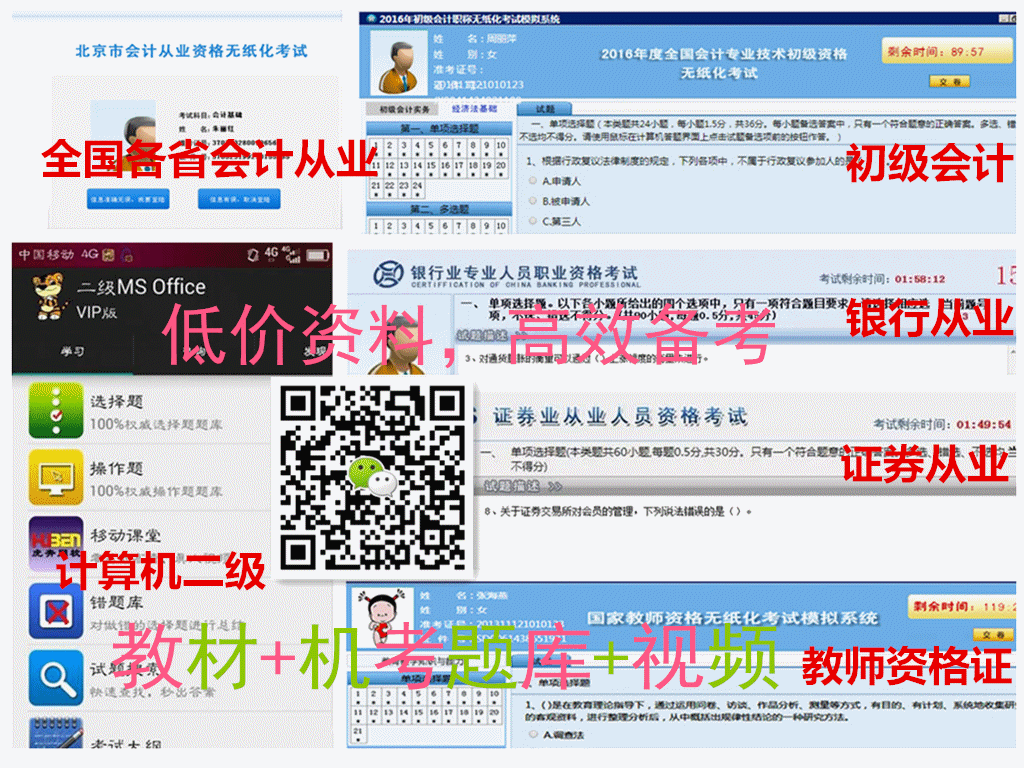 小编在校大学生,一年自学通过六个证,现开办自己的软件图书专营部。以学生价专业提供各省会计从业、全国计算机二级、银行从业、初级会计、证券从业、教师资格证、公务员的最高效备考资料,资料以原题多火爆互联网。