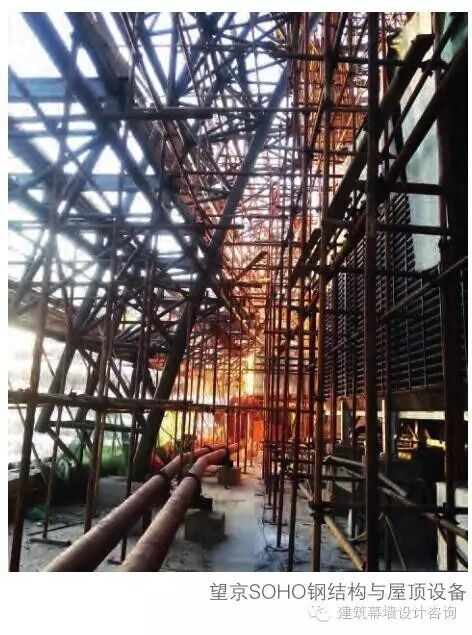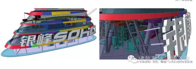 (3)幕墙与机电专业协调,如在施工图设计时楼体泛光照明系统方案无法完善,其线路与灯具的布局就需要与幕墙在施工二次深化设计时进行协调;屋顶机电设备布置密集与幕墙专业需要大量的协调工作等。