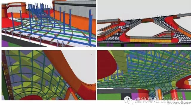 幕墙工程的工序是在具备完整的主体结构后开始施工,可与机电工程并行施工。幕墙与其他各专业在空间占位上联系紧密,按潘石屹先生的话说就是包包子的皮,不要出现馅太大而皮包不住的情况。复杂幕墙系统通过BIM加强了如下空间占位管理: