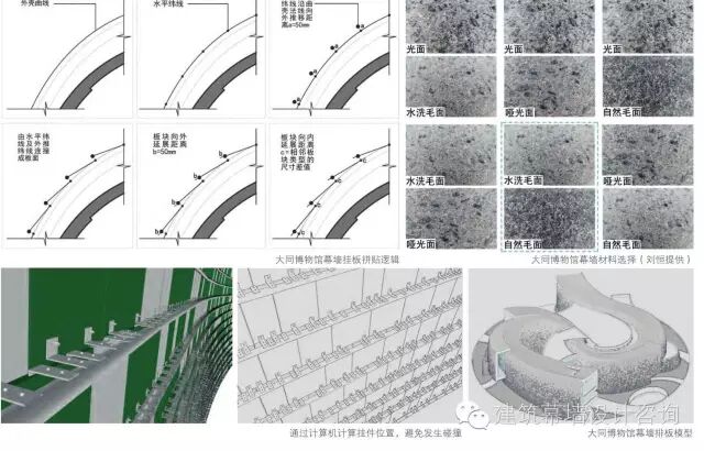 参数化设计方法与BIM珠联璧合,参数化设计在BIM流程中核心的应用是优化面板,在视觉误差允许的情况下,尽可能地用单曲面代替双曲、平板代替单曲(图4),规格尽可能统一,以降低造价。