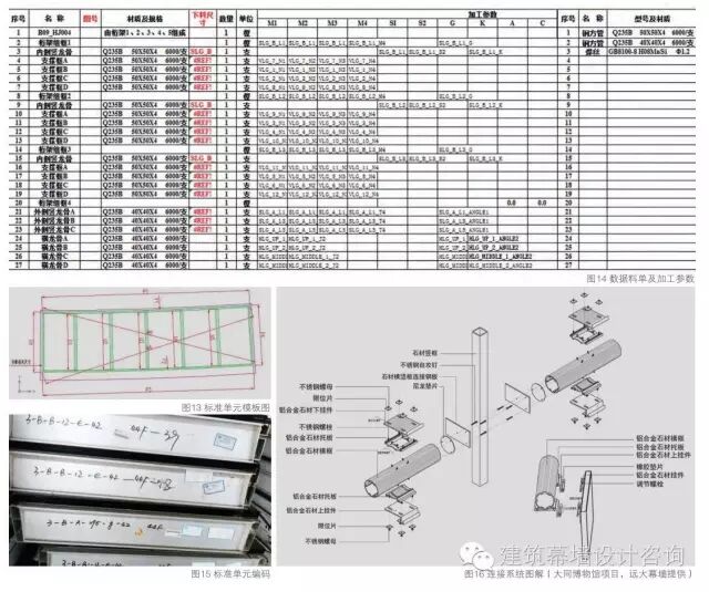 料单中对每根构件都有唯一的编号,通过编号下放材料加工、管理材料堆放,按标准单元模板图快速拼装单元。根据型材几何特点,与下游材料供应商沟通,以数据表、CAD文件、三维模型的形式下发生产料单。