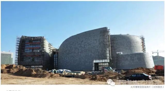 大同博物馆由中国建筑设计研究院的崔愷院士担纲总建筑设计师,总建筑面积约6万㎡ ,,形成从地面生长的姿态。采用火烧面和水洗面工艺,形成浅灰和深灰两种色彩和质感的石材表面,并通过由浅到深的过渡控制与随机搭配,产生建筑表面丰富的质感变化。