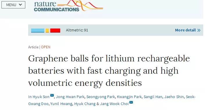 (三星研究员在Nature杂志上发表有关石墨烯球的科研成果文章)