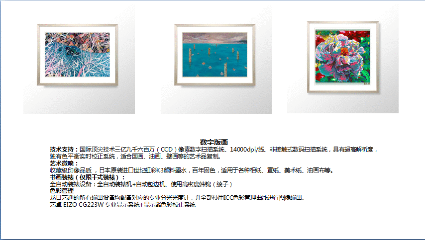 先后获得中国印刷集团、中国印刷研究所、科印传媒等举办的“数码印刷在中国大奖赛”数码印刷“金奖”、艺术微喷“金奖”、写真喷绘“铜奖”、画册及光盘类“评委推荐奖”。