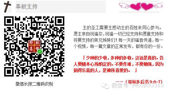 亲爱的弟兄姊妹,邀请您一同参与网络福音传播事工,您每次的转发都有可能使一个人的灵魂得救,愿上帝赐福纪念你手所做的,阿们!