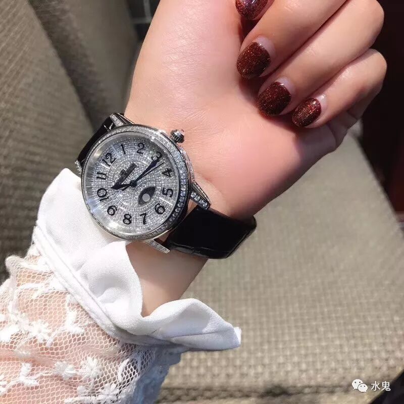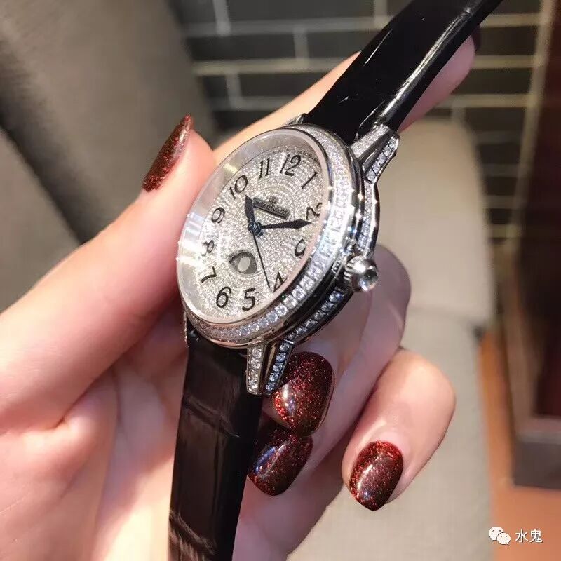 积家约会系列高品质女表,字面表壳奢华镶钻,进口石英机芯,蓝宝石镜面,原装折叠扣,尺寸宽33mm,厚9mm。