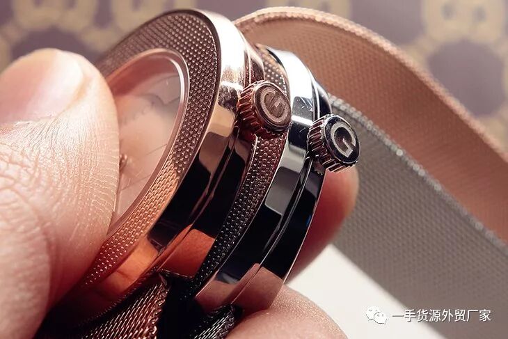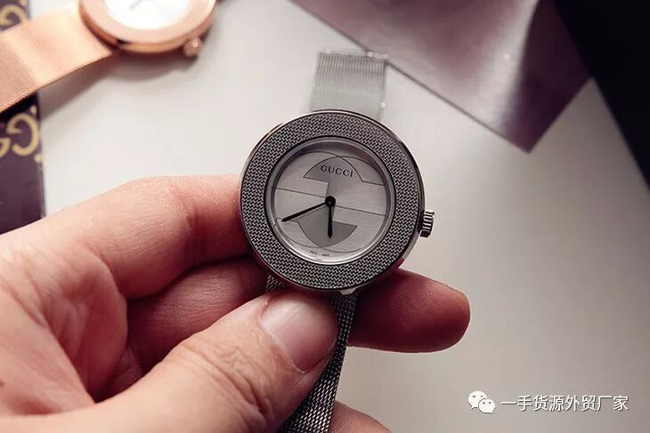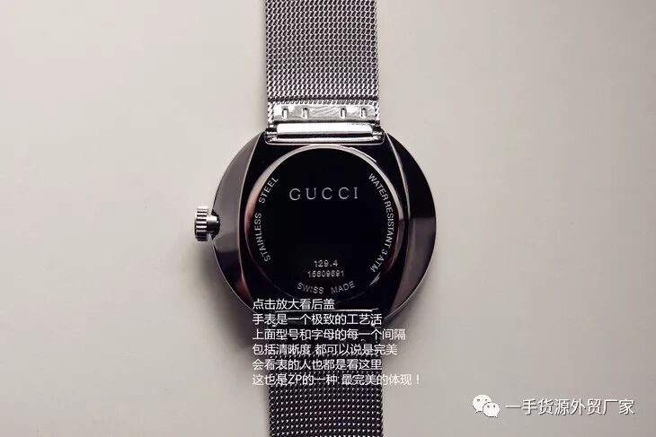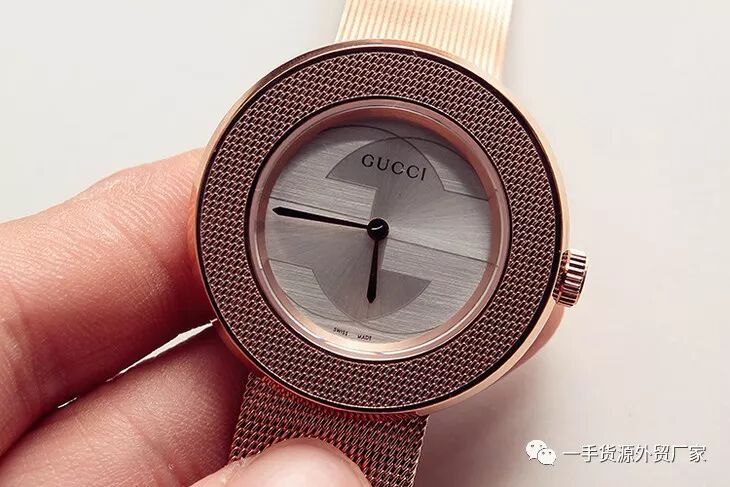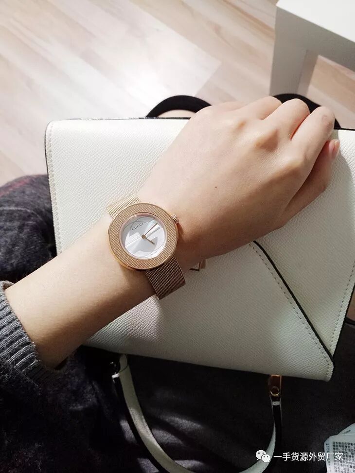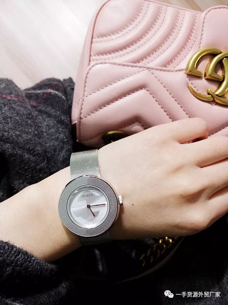 此款YA129517女士腕表内置优质瑞士石英机芯,采用新型的网格表链,透着银色光泽,与手腕亲密接触时舒适无比。与之呼应的圆形表圈比较突出,再加上精钢插针式表扣,呈现了Gucci特质。