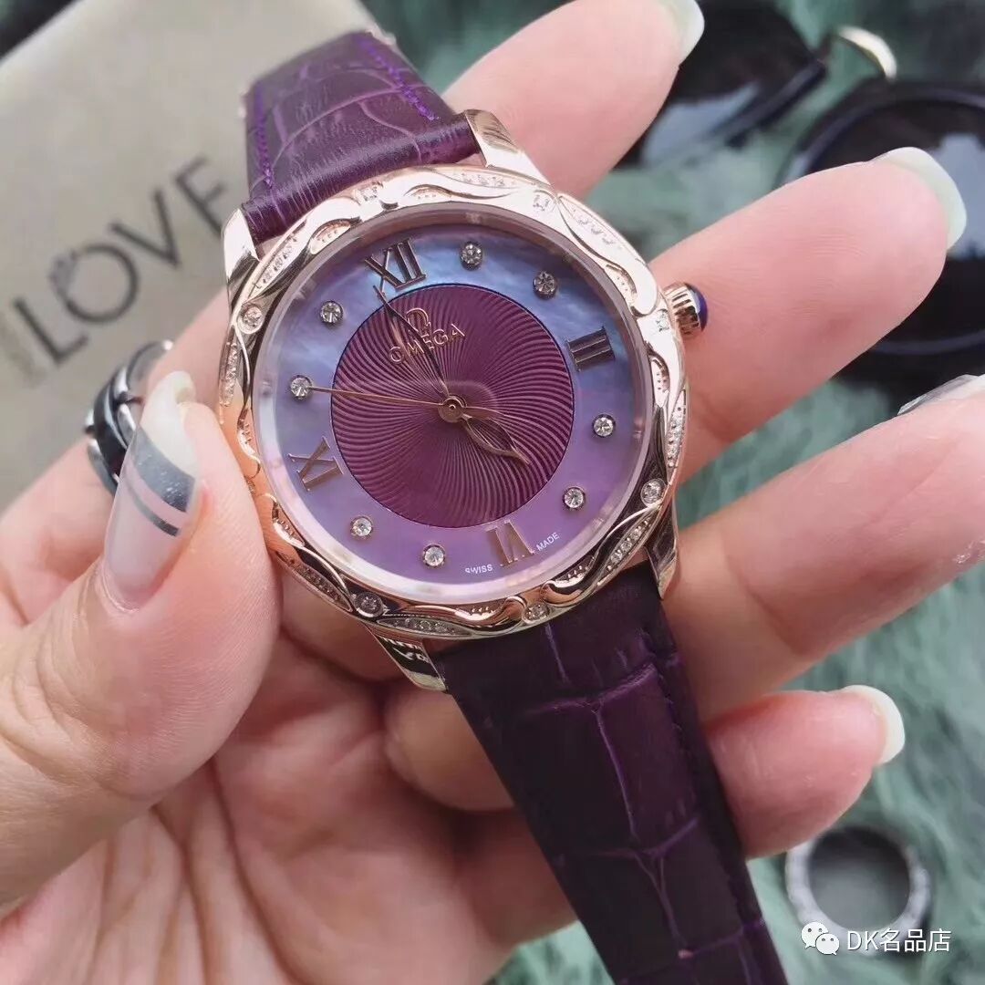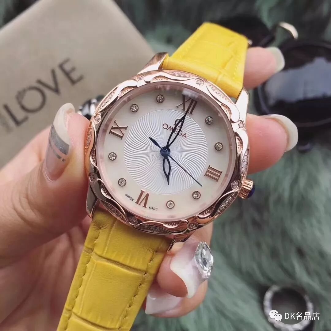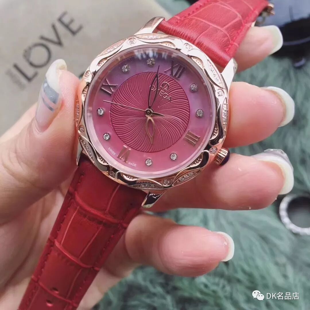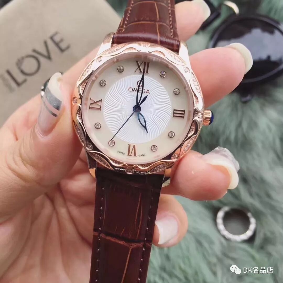 OMEGA【欧米加】新款女士腕表,唯美主义首选,圈口3D立体雕刻和间镶嵌钻石相结合,不仅有浪漫气息和优雅风格更透露出一些古典韵味,深海贝母字面且多色可选,每张字面都显现不同的光彩,316L精钢表壳,进口石英机芯,矿物质钢化拱形镜面,牛皮表带,原装折叠表扣,尺寸:35mm。