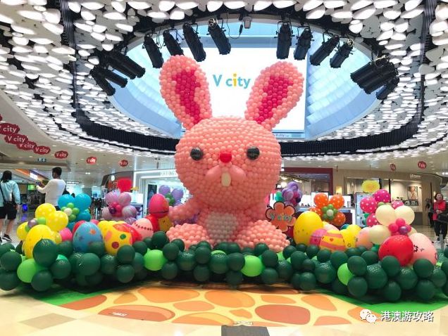 3米高室內復活兔氣球裝置降落V city打造「Big Big Bunny復活節花園」,由即日起至2018年4月2日,V city將打造成「Big Big Bunny復活節花園」,場內布滿復活節氣球裝飾,亦會向顧客派發萌兔手環氣球,務求與大家度過一個充滿童真、活力的復活節!
