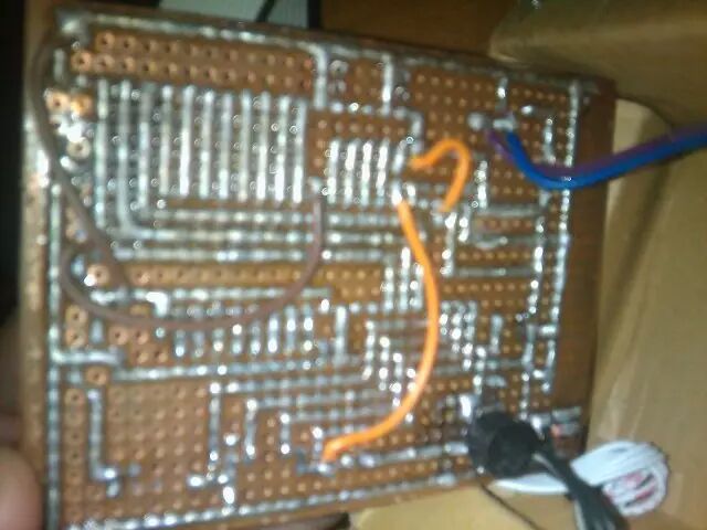 因为电路不算复杂,所以用焊锡搭焊,这样走线显得整齐,呵呵O(∩_∩)O~  个别线绕不过去的就用导线飞线,这是焊好的背面图片,还是有点乱,纠结啊!(*^__^*) 嘻嘻……