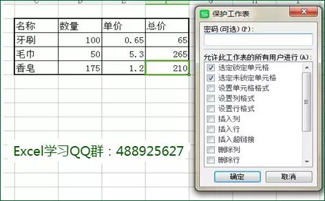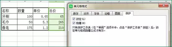 首先,我们选择要隐藏的“总价”列,单击右键,调出设置单元格格式,选择最后的保护对话框,将锁定和隐藏全部勾选。