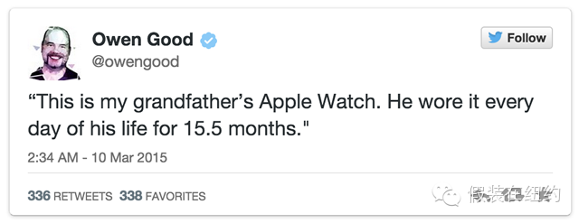 “这是我祖父的苹果手表。他每天都戴着,一共戴了15.5个月。”