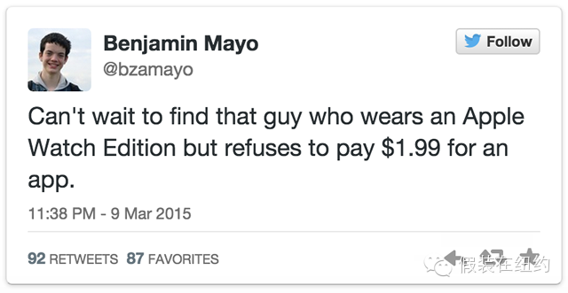 我等不及了,真想看看那些戴着苹果土豪表却不愿意花1.99美元买app的人。