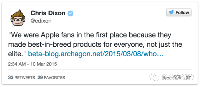 我们一开始成为苹果的粉丝,是因为他们为每一个人制造最好的产品,而不是因为它们只给精英们制造最好的产品。