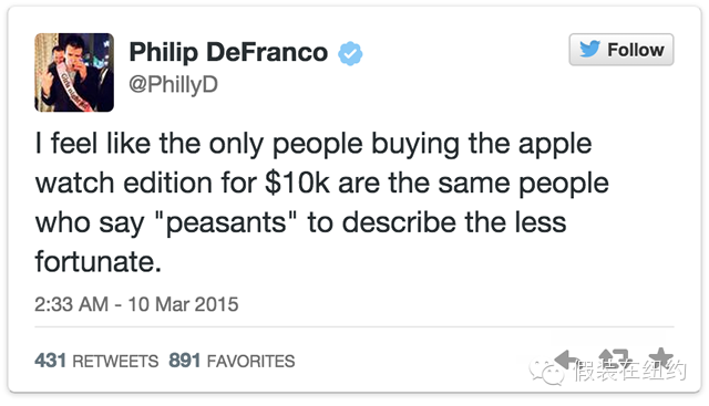 的话说,如果从奢侈品的角度来衡量,这款表的定价根本不算贵,最多只能算是“高价”,还不够格称为“奢侈”。苹果的问题在于把宣传的重点放在了这款手表能给用户带来什么,但是奢侈品行销应该强调的是,这款产品能够暗示旁人它的所有者所已经取得的地位和成就。