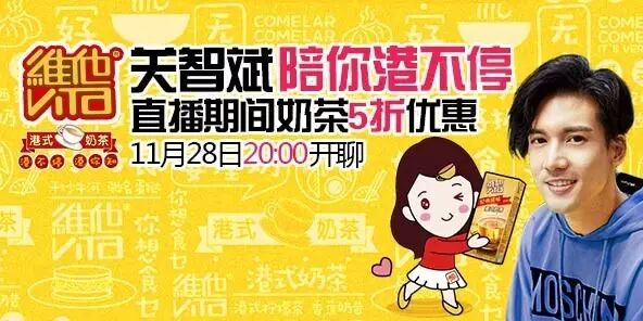 奶茶王子关智斌直播互动+ 5折维他港式奶茶+抢亲笔签名照+抢免费赠饮